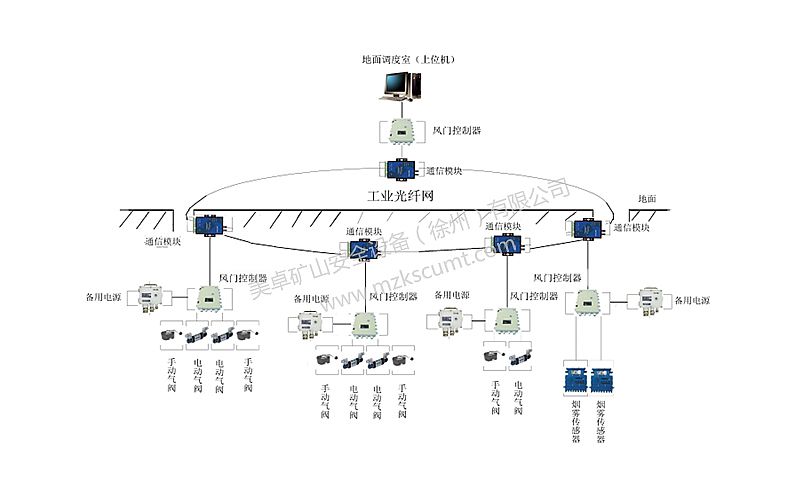 煤礦井下通風救災系統由上位機、分站、救災門、煙霧傳感器、語言聲光報警器、備用電源等組成。其用于礦井發生火災或其它災害時進行現場監控及救援,以最大限度減少傷亡及損失。
